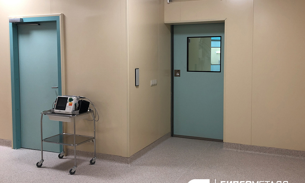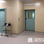 Одна из особенностей при строительстве являлось то, что направляющие для подвесного потолочного оборудования, нужно сделать в один уровень с кассетным потолком, но при этом обеспечить герметичность. Обрамление дверных коробок необходимо было выполнить так, чтоб выровнять их с облицовкой стен. Двери не менялись, но при этом толщина дверного проема уменьшилась и дверная коробка выступала за поверхность стен, пришлось индивидуально изготавливать обрамление так, чтоб это выглядело достойно.